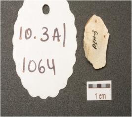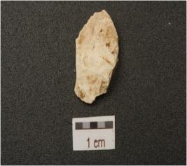 | Description / विवरण | A flake made on chert, prepared platform and prominent bulb at ventral side. |