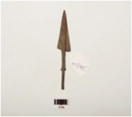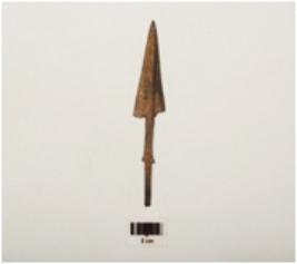 | Description / विवरण | Copper arrow head with tang, flat surface pointed top barbed and lenticular in cross-section. |