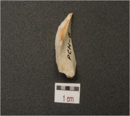 | Description / विवरण | A blade made on chert, single ridged, flake scars on the surface and irregular edges. |