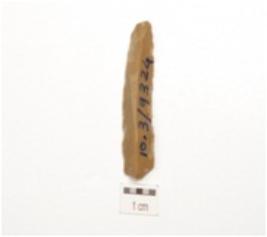 | Description / विवरण | Parallel sided chert blade, rectangular cross-section, use-wear marks on working edge and proximal end broken. |