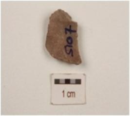 | Description / विवरण | Chert blade, distal end broken, prominent bulb on ventral surface, use wear marks on both working edge and blade scars on dorsal surface. |