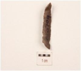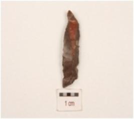 | Description / विवरण | parralllel sided chert blade, prominent bulb with striking platform, a ridge on dorsal surface and use wear marks on both working edge. |