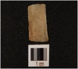 | Description / विवरण | A fragment of blade made of chert, mid ridge on the dorsal sides with sharp working edges. |