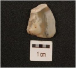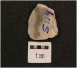| Description / विवरण | Utilized chert flake, prominent bulb with striking platfome, use wear marks on edge and a ridge on dorsal surface. |