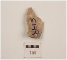 | Description / विवरण | chert blade distal end broken, prominent bulb with striking platform, use wear marks on working edge and ridge on dorsal surface. |