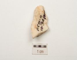 | Description / विवरण | A chert utilized flake with flake scars and use wear marks on edge. |