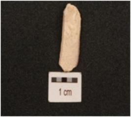 | Description / विवरण | Chert blunted blade, diffused bulb on ventral surface, use wear marks on working edge and striking platform visible. |