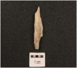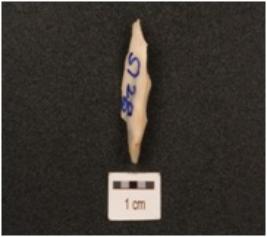 | Description / विवरण | Agate scraper, partly broken, bulb absent use wear marks on working edge and flake scars on dorsal surface. |