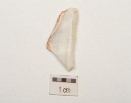 | Description / विवरण | A chalcedony flake with cortex on edge and triangular section. |