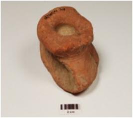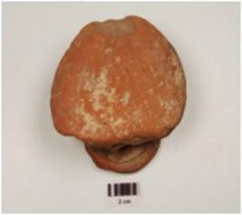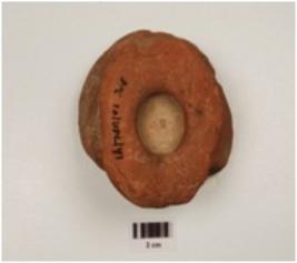 | Description / विवरण | A dabber of red terracotta has solid handle with a whole rounded base and depression on top. |