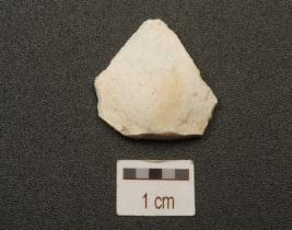| Description / विवरण | A chert end struck flake with prepared platform and bulb on ventral. |