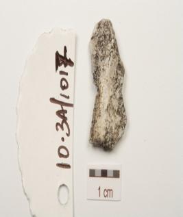 | Description / विवरण | A chalcedony flake with double ridge on dorsal, trapezoidal cross section and use wear marks on edge. |
