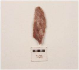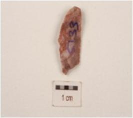 | Description / विवरण | chert blade distal end broken prominent bulb with striking platform a ridge on dorsal surface and use wear marks on both working edge. |