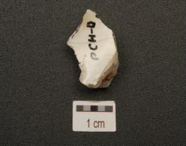 | Description / विवरण | A chert core on flake with three blade scars on surface and trapezoidal cross section. |