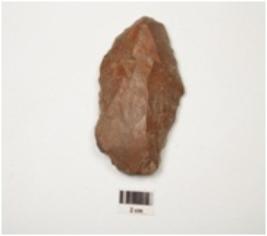 | Description / विवरण | Scraper made of jasper with flake scars on dorsal and diffused bulb on ventral, retouched marks along cutting edges. |