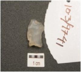 | Description / विवरण | Chert blade with flake scars on dorsal and prominent bulb on ventral and use-wear marks on cutting edges. |