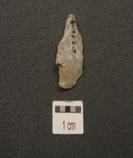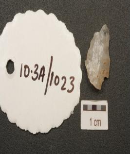 | Description / विवरण | A quartz flake with single ridge and triangular cross section. |