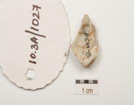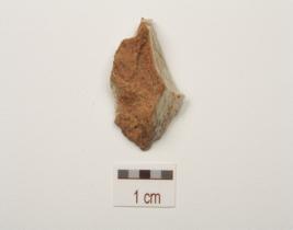 | Description / विवरण | A chert utilized flake with cortex on surface and use wear marks on edge. |