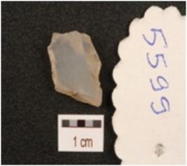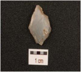 | Description / विवरण | fragment of blade made on chalcedony, flake scars on one side, use wear marks on working edges and rectangular in section. |