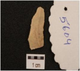| Description / विवरण | A blade made on chert with a mid ridge, use wear marks on working edges and triangular in section. |