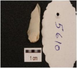 | Description / विवरण | A blade made on chalcedony, partly broken from one side, use wear marks on working edges and triangular in section. |