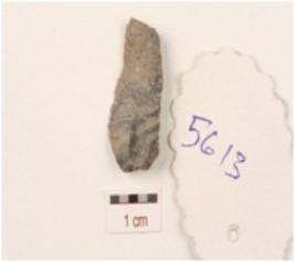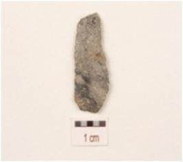 | Description / विवरण | A blade made on chert with a mid ridge on dorsal surface, use wear marks on working edges and triangular in section. |