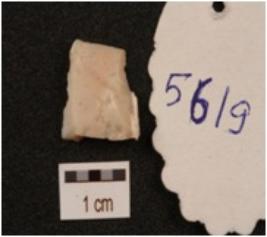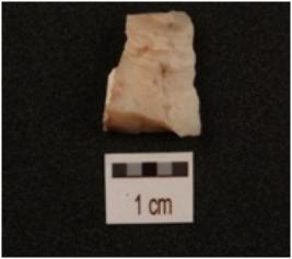 | Description / विवरण | A flake made on chert, use wear marks on cutting edges. |