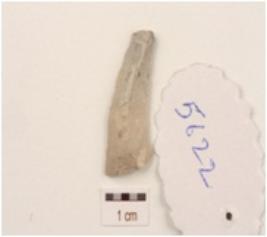| Description / विवरण | A fragment of blade made on chert with a ridge on dorsal surface, use wear marks on working edges and trapezoidal in section. |
