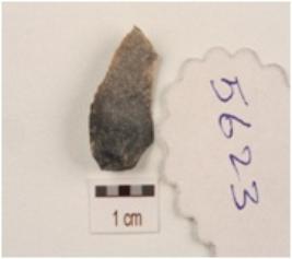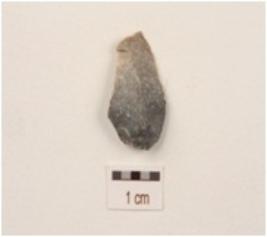 | Description / विवरण | A blade made on chert with a mid ridge, prominent bulb on ventral side, triangular in section and use wear marks on working edges. |