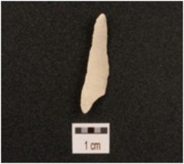 | Description / विवरण | A blade made on chert with ridges on dorsal surface, use wear marks on working edges and triangular in section. |