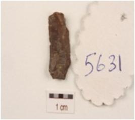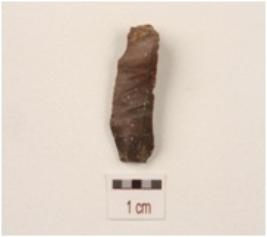 | Description / विवरण | A blade made on chert with a mid ridge, use wear marks on working edges and triangular in section. |