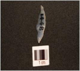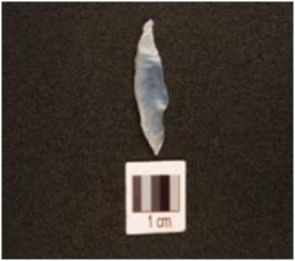 | Description / विवरण | A chalcedony blade, use-wear marks on right cutting edge. |