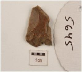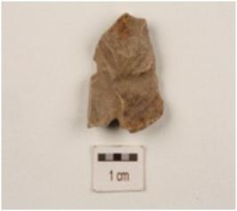 | Description / विवरण | flake made on end struck chert flake, prominent bulb on ventral surface, flake scars on both surface and use wear marks along cutting edge. |
