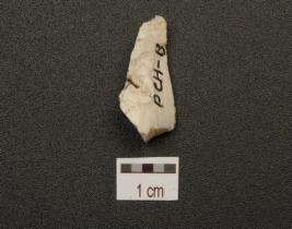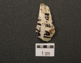 | Description / विवरण | An end struck flake made on chert, prepared platform on proximal end, single ridge on dorsal side and triangular cross section. |