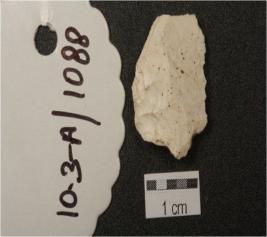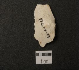 | Description / विवरण | Flake made on chert, prepared platform, prominent bulb and flake scars on the surface. |