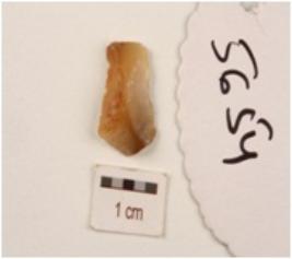 | Description / विवरण | Flake made on end struck chalcedony, flake scars on dorsal surface, cutting edges, prominent bulb on ventral surface and triangular in section.. |