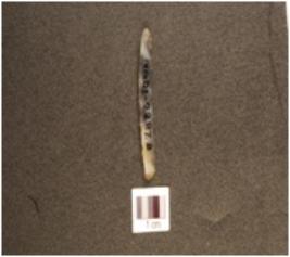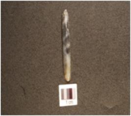 | Description / विवरण | A parallel sided chalcedony blade with prominent mid ridge on dorsal, prepared platform, bulb on ventral, irregular retouch on cutting edge and triangular cross section. |