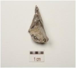 | Description / विवरण | An end struck flake made on chert, prepared platform on proximal end and flake scars on one side. |