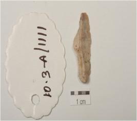 | Description / विवरण | Blade made of chert, mid ridge on dorsal side and triangular cross-section. |