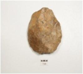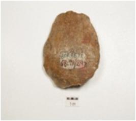 | Description / विवरण | A scraper, made on chert, flake scars on surface, prepared platform, prominent bulb on vantral side and irregular retouches along the working edge. |