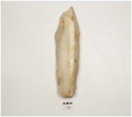 | Description / विवरण | A scraper, made on chalcedony, use wear marks along the working edge, cortex in intact and flake scars on dorsal side. |