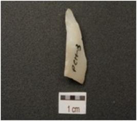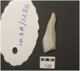 | Description / विवरण | End struck chert flake, negative bulb on ventral surface and chipping dorsal surface. |