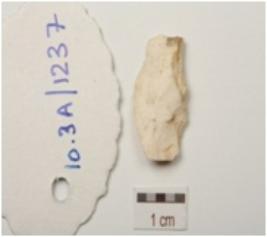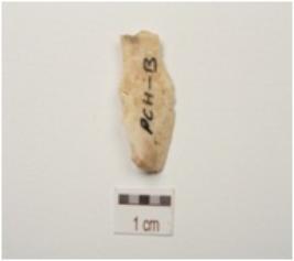 | Description / विवरण | A chert blade, prominent bulb on ventral surface, prepared platform and use wear marks on cutting edge. |