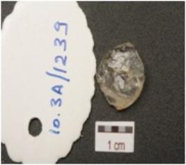 | Description / विवरण | End struck quartz flake, prominent bulb on ventral surface and chipping surface. |