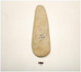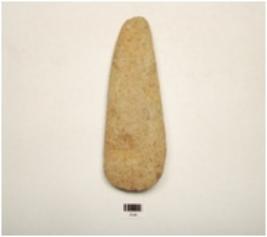 | Description / विवरण | A polished stone celt, thick sides, butt end, broad and sharp working edge and oval cross section. |