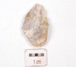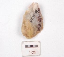 | Description / विवरण | A scraper made on chert stone, ridge on dorsal side and use marks on edges. |