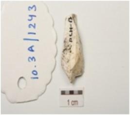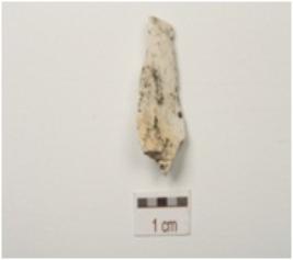 | Description / विवरण | End struck chert utilized flake, negative bulb on ventral surface and wear marks along cutting edges. |