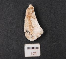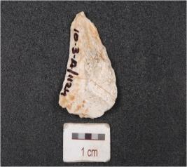 | Description / विवरण | A flake made on chert stone, ridge on surface and use marks on edges. |