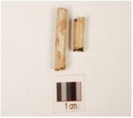 | Description / विवरण | Fragment of a point made on bone point damage, circular cross section, smooth surface, natural white colour and polished. |