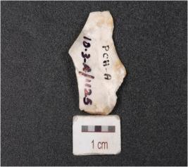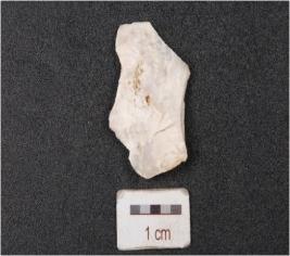 | Description / विवरण | A flake made on chert stone, prepared platform and irregular edge. |